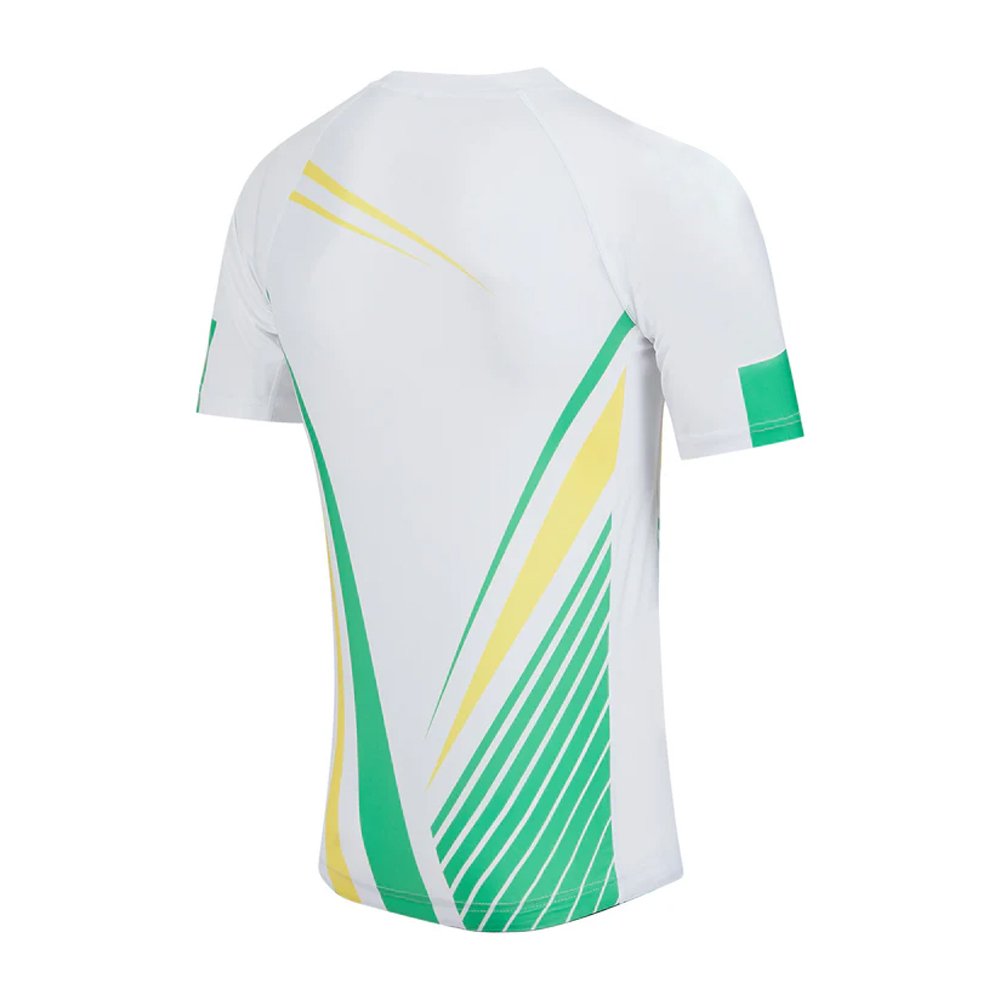 - White rash guard with blue & green print